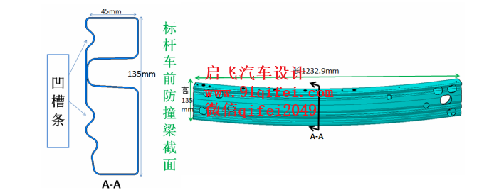 如图11所示,同前防撞梁一样,断面结构一样,尺寸略有不同。